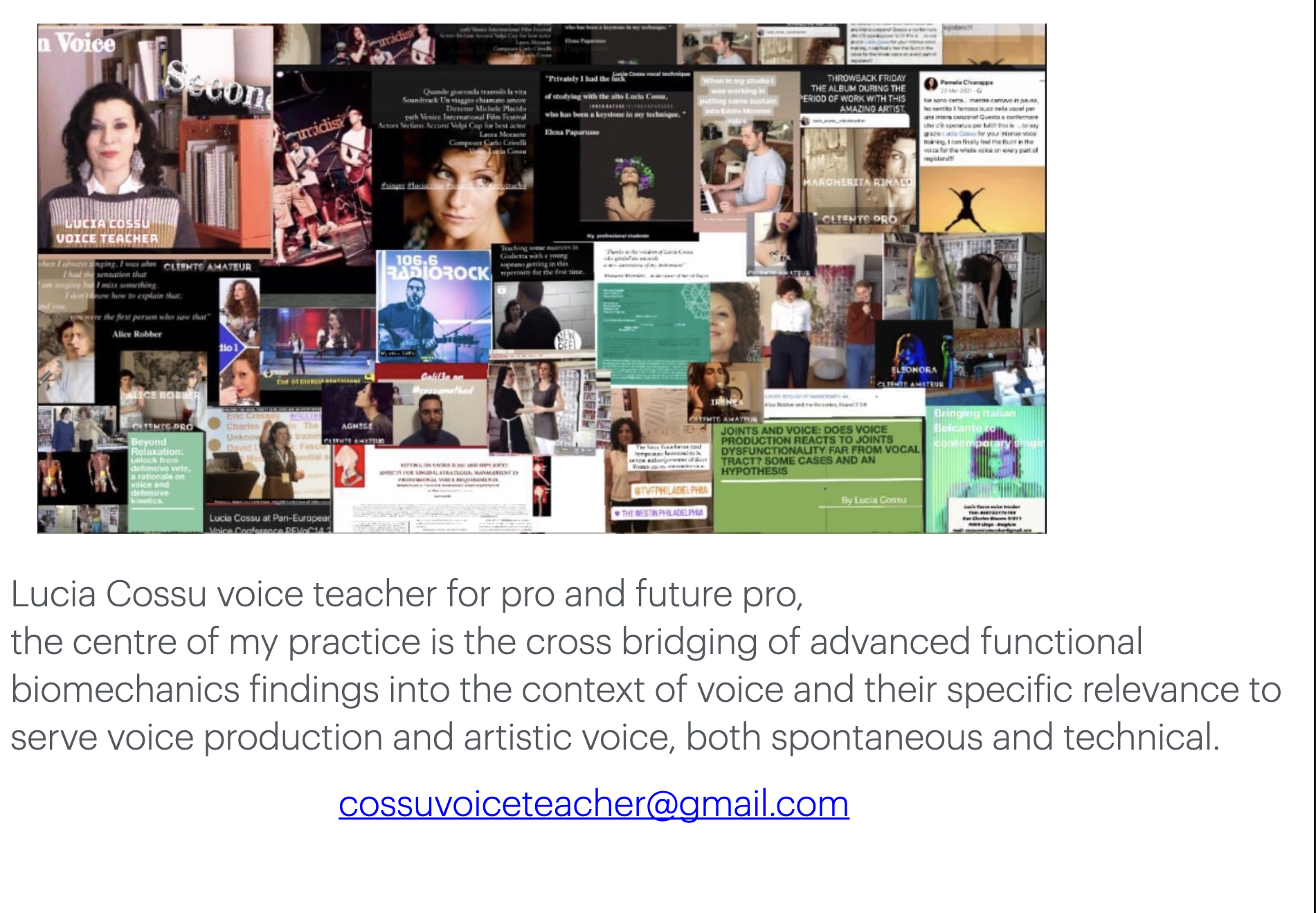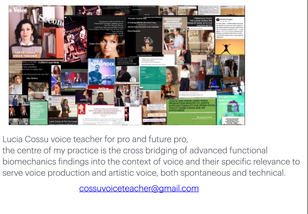 I am presenting on mechanism based/oriented way because it is how my practice is oriented since 15 years, still it is a practice and born to give options and healthy/effective career or voices to my clients. My work is the cross bridging of advanced functional biomechanics findings into the context of voice and their specific relevance to serve voice production and artistic voice, both spontaneous and technical.