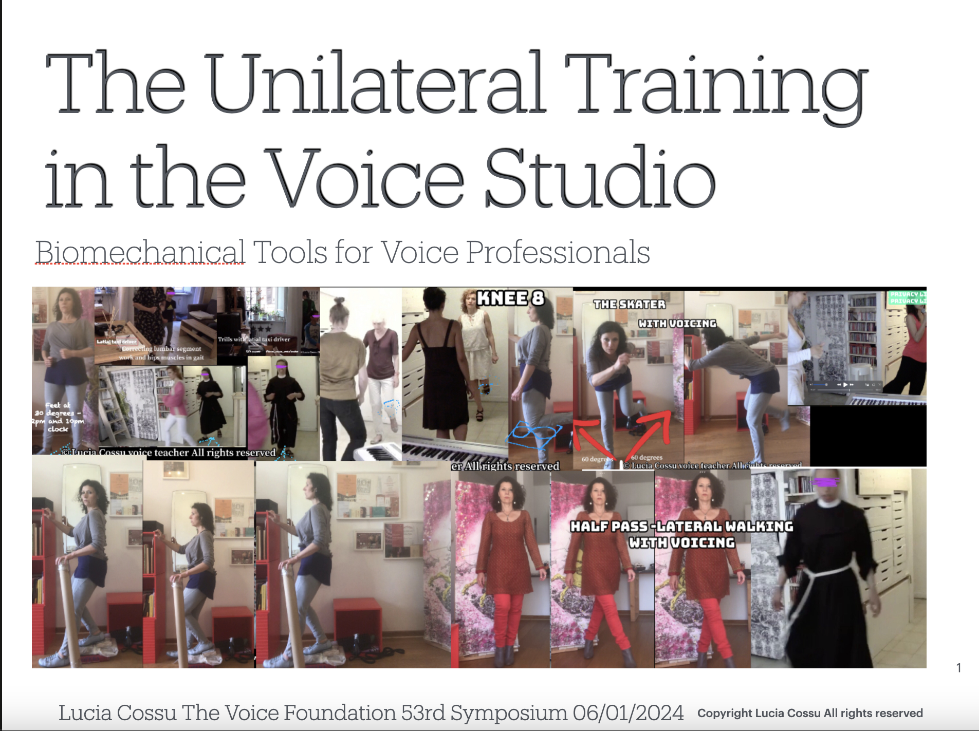 In the oral presentation The Unilateral Training in the Voice Studio – sorry- I had to be very technical and the short times did not permit me to better clarify in less specific terms the concept and how to of the proceeding. I am sorry, but not that much, it is for me a priority to show the not generic but absolutely kinesiologic basis of this, and how it is yet kinesiological and biomechanical a direction into the model that in the field we did not connect into its voice implications.