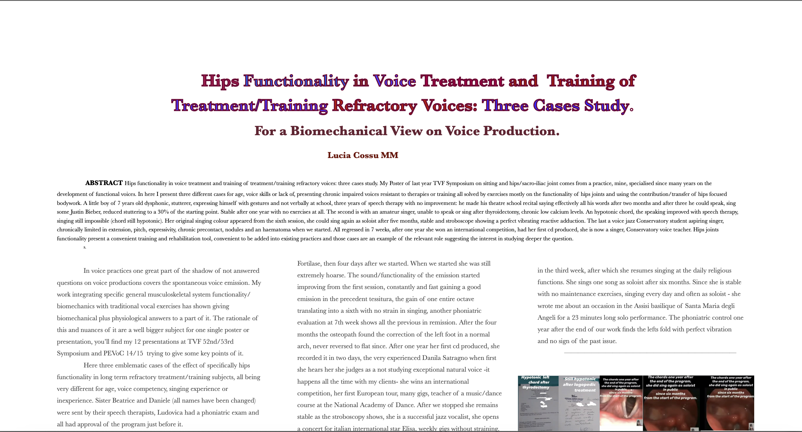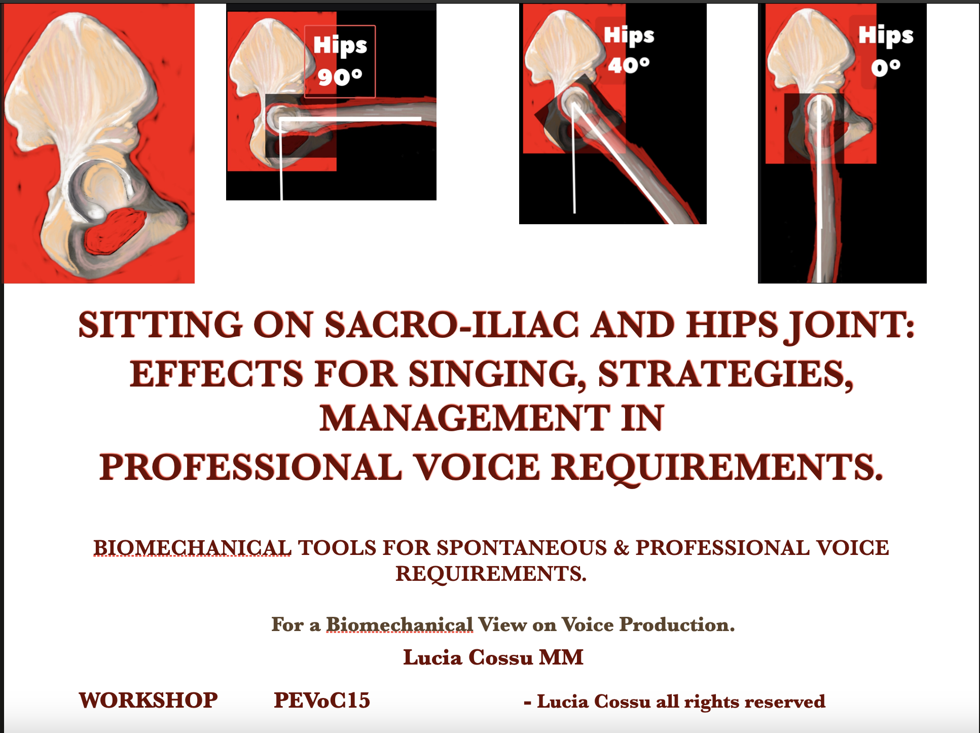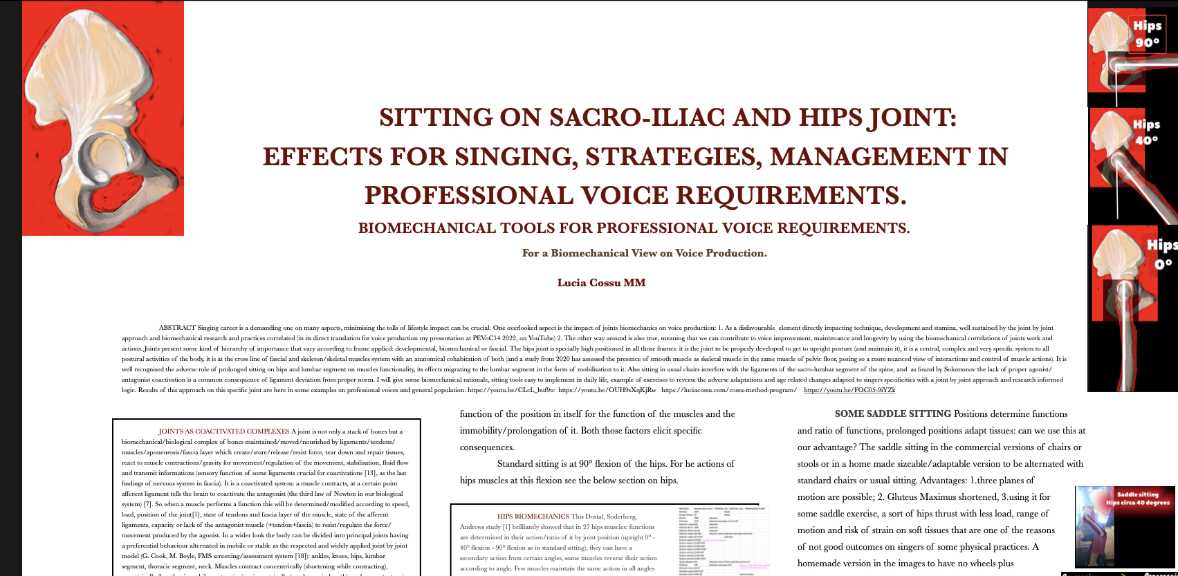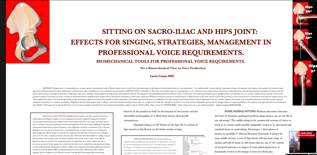 The ninth is on how hips are voice related and a precise voice quality/voice production fundamental subject. Again it can be in a more theoretical version with a series cases of voices refractory training/medical treatments or a more practical one with exercises and strategies of it. Originally presented as a the Voice Foundation 53rd Symposium – 2024 Philadelphia