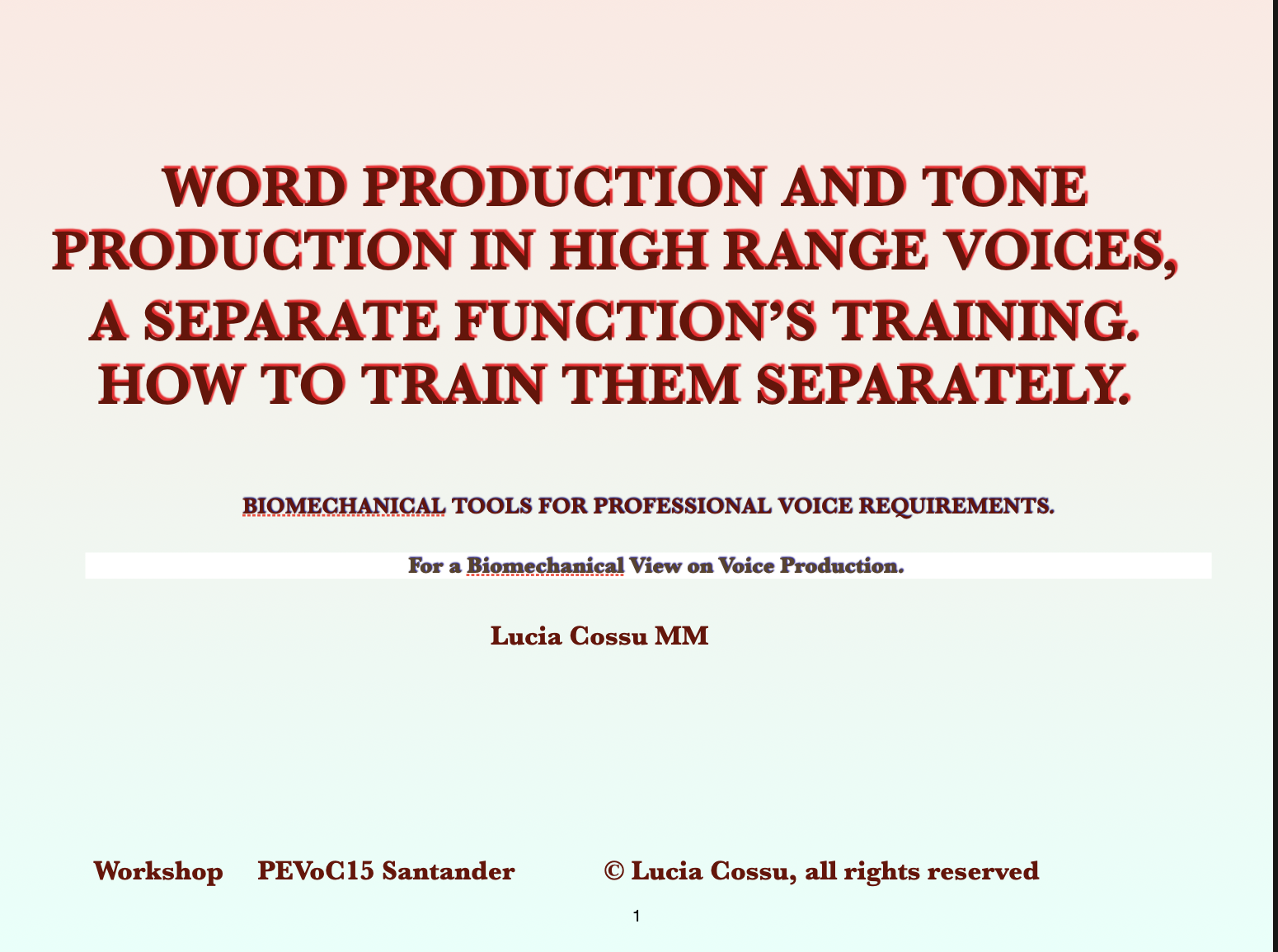 The seventh is on a precise logic of training, overlooked by again a sort of airflow and respiratory all vision of voice, having shown fast and unprecedented results since it is a very precise and important human biomechanical logic. It was an oral presentation at the Voice Foundation 53rd Symposium – Philadelphia 2024 and can be in the practical version of it or the more rationale one as at the Voice Foundation. Choose the one more appropriate.