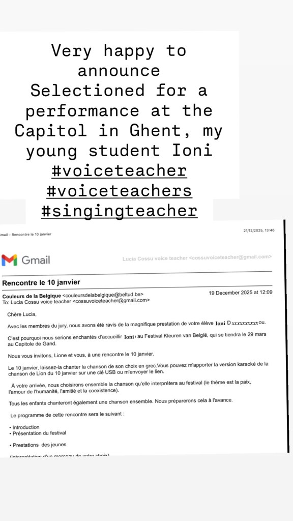 Selectioned for a performance at the Capitol in Ghent, my young student Ioni