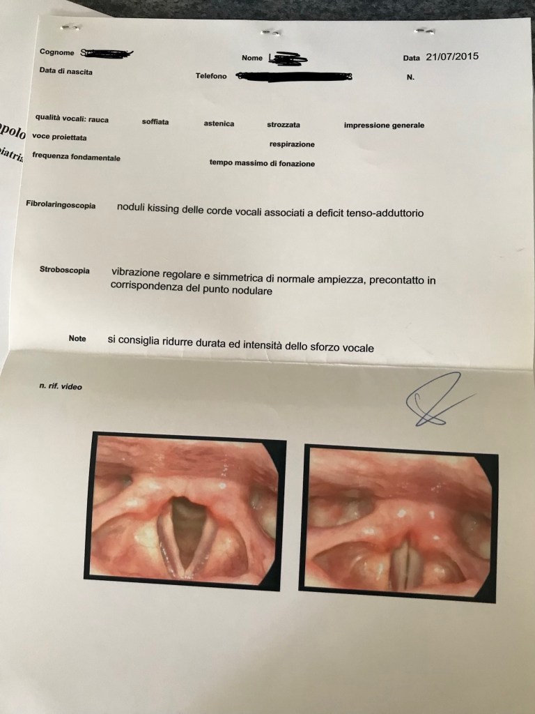 * Nothing of what I do and I have worked on and that I will work on is intended in opposition or at the place of medical phoniatrics and speech treatments or advice but only according with them and as an extension of them when they had not been the complete solution. My research is to be intended to add knowledge and tools to voice teachers, phoniatrics and in speech therapy and I always work in sincronicity with medical advice.