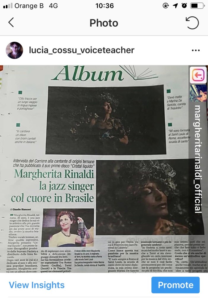 En Italie j’ai travaillé en développant la carrière et la technique de des professionnels et jeunes, au même temps que en aidant certains patients que leur docteurs de la voix m’ont envoyé. Une année à Londres dans laquelle j’ai aussi suivi deux chanteurs pour leur début Alice Robber e Eddie Monroe. Vous en trouvez traces dans les pages des professionnels ou pas professionnels et dans le Cossu méthode program. Ici un peu de materiel des artistes que je suis ou suivi et des jeunes