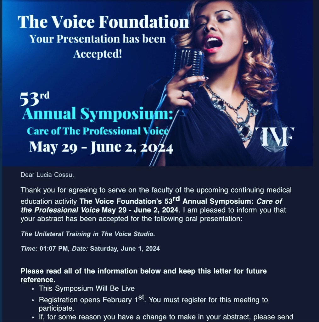 Very happy, I will present at The Voice foundation 53rd Symposium. Second year in a row, honoured and happy.