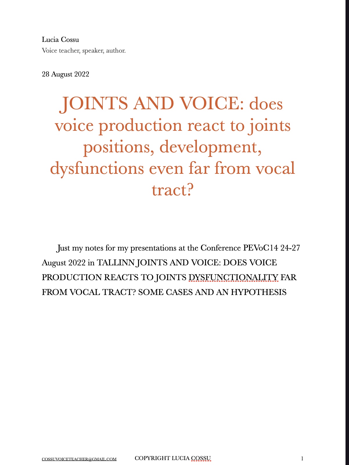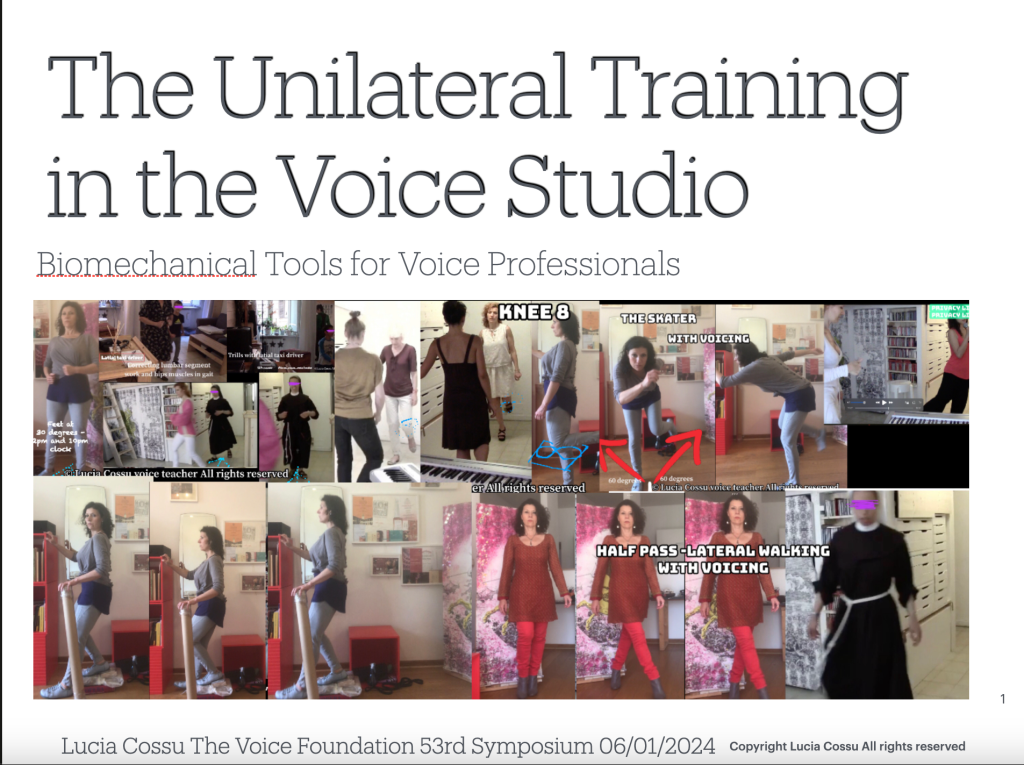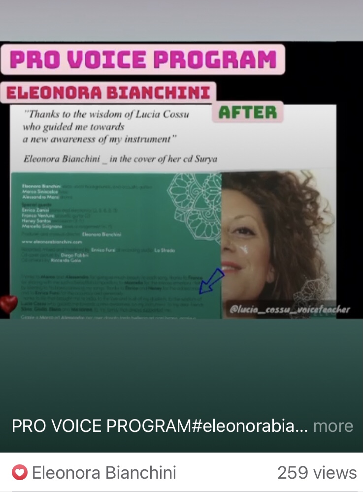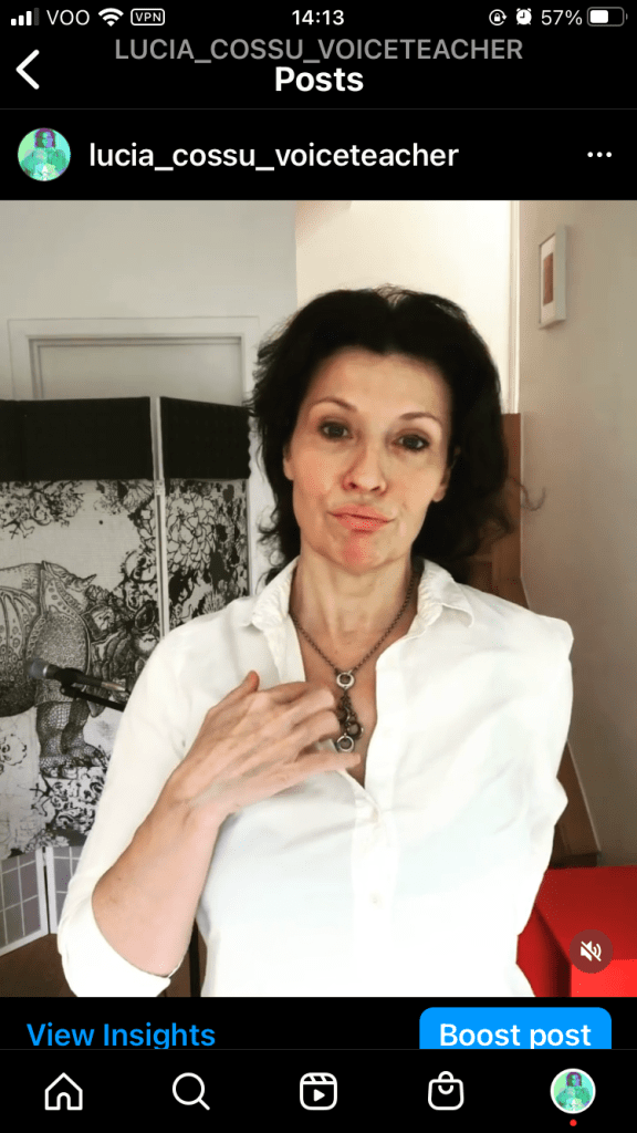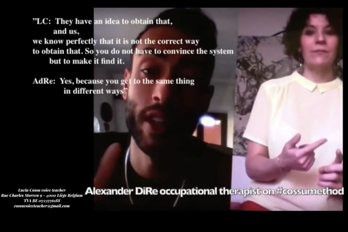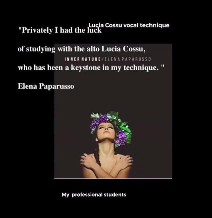 Her practice is a door to the physiological voice, it serves all styles, has been presented internationally, I call it the (r)evolution of Voice model or if you prefer cossumethod* in the current practice. It is an integrated biomechanics of the general musculoskeletal system in its contributions to voice quality and voice production with the traditional high quality technique which is the Italian Belcanto. I am presenting the rationale of it internationally to make it common knowledge in the future. My job daily being of voice optimisation, transformation, training for pro and future pro singers (or passionate amateurs), optimisation of breath and workouts, with the specific voice perspective tools in general well-being and mobility with the advantage of the survival functions rooted into voice production. 15 years of constant artistic and physiologic results.