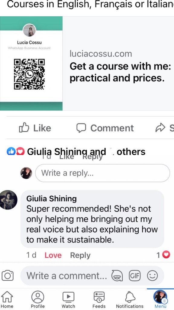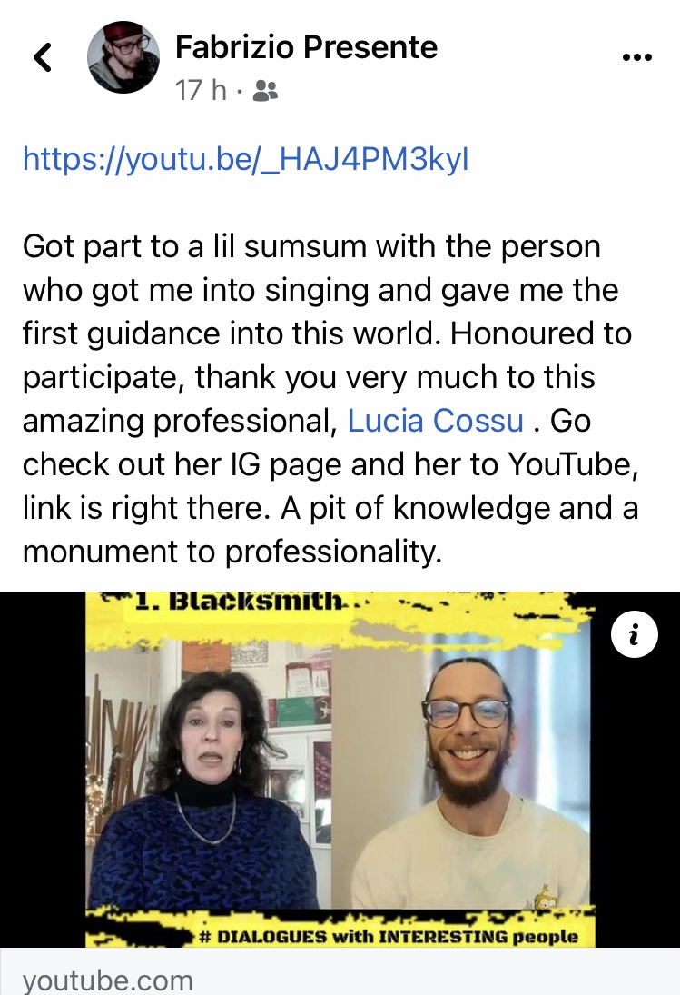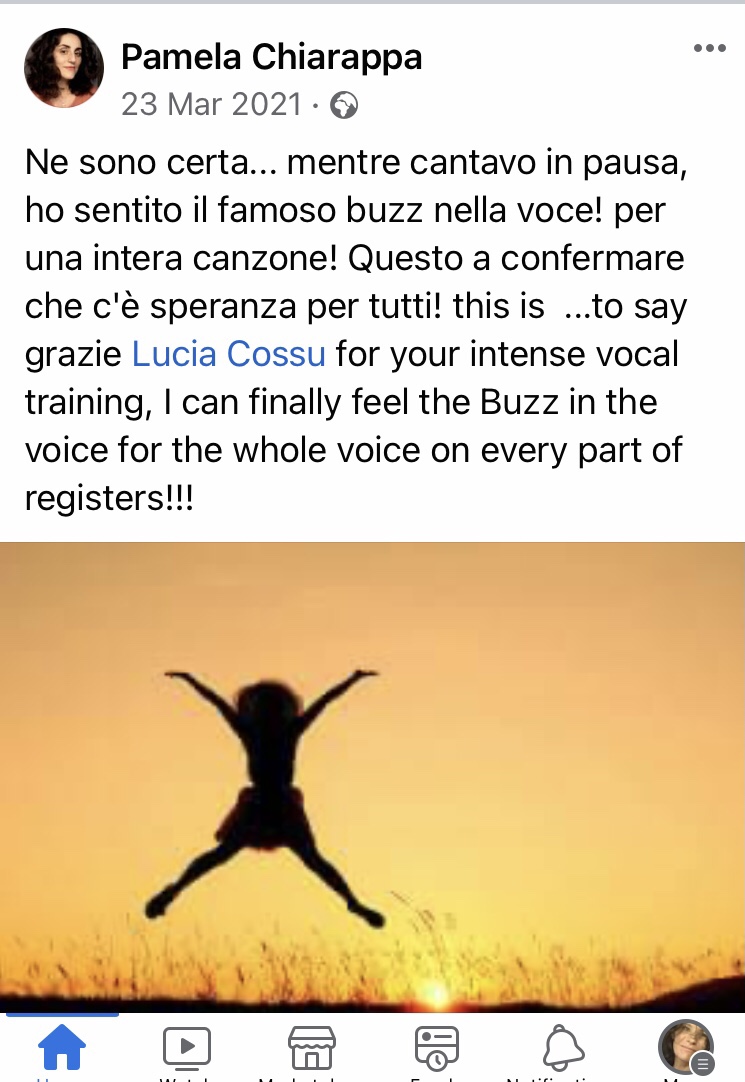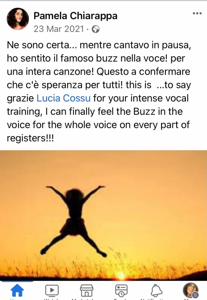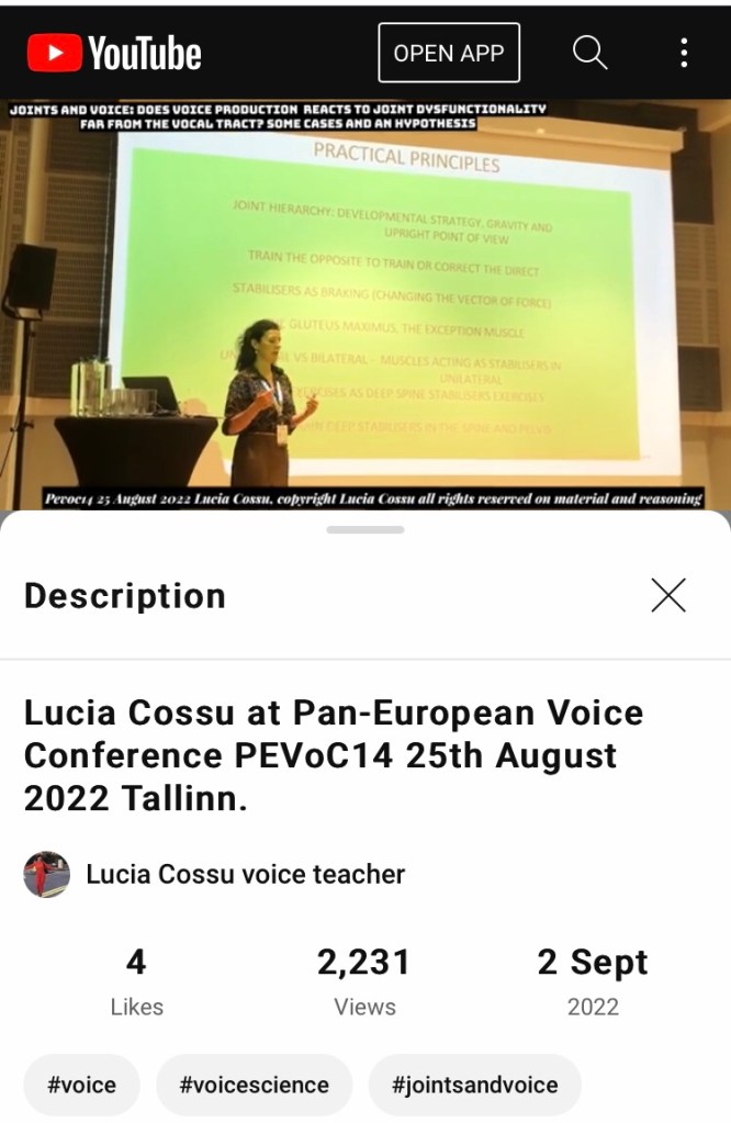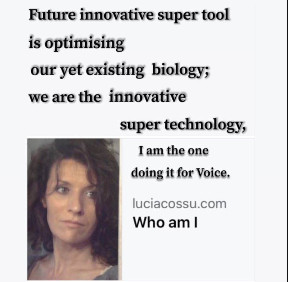 Her practice is a door to the physiological voice, it serves all styles, has been presented internationally, I call it the (r)evolution of Voice model or if you prefer cossumethod* in the current practice. It is an integrated biomechanics of the general musculoskeletal system in its contributions to voice quality and voice production with the traditional high quality technique which is the Italian Belcanto. I am presenting the rationale of it internationally to make it common knowledge in the future. My job daily being of voice optimisation, transformation, training for pro and future pro singers (or passionate amateurs), optimisation of breath and workouts, with the specific voice perspective tools in general well-being and mobility with the advantage of the survival functions rooted into voice production. 15 years of constant artistic and physiologic results.